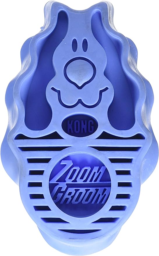 Kong zoom groom is the best grooming and shampooing brush available. Removes loose hair like a magnet, stimulates capillaries and natural oil production for healthy skin and coats. Zoom groom brushes are effective for all dogs and coat types. Groomassage” your dog with the zoom groom. Regular grooming with zoom groom effectively reduces shedding.”.