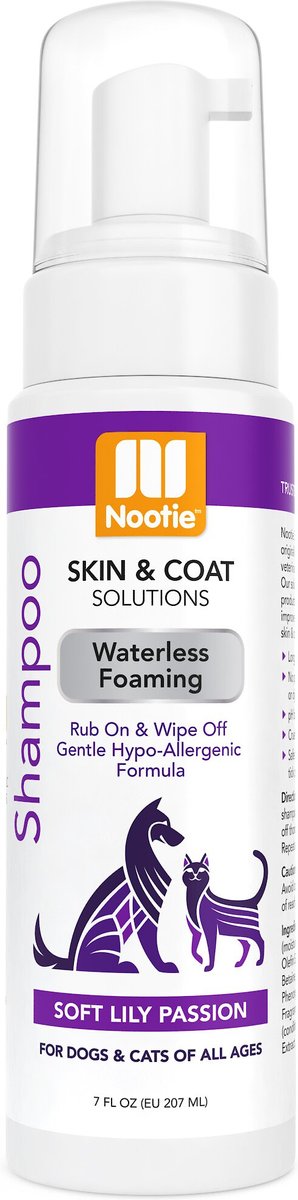 Massage foaming shampoo into dry coat. Then wipe off thoroughly with towel to dry. Repeat as often as desired.
