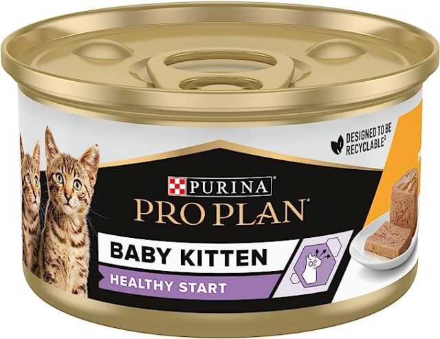 PROPLAN BABY KITTEN chicken foam kitten complete food is designed for healthy weaning kitten development. It is distributed from 6 weeks. Benefits Foam adapted to transition from breast milk to solid foods Amino acid profile suitable to support bone and muscle growth Highly digestible protein sources Suitable for females in pregnancy or lactation