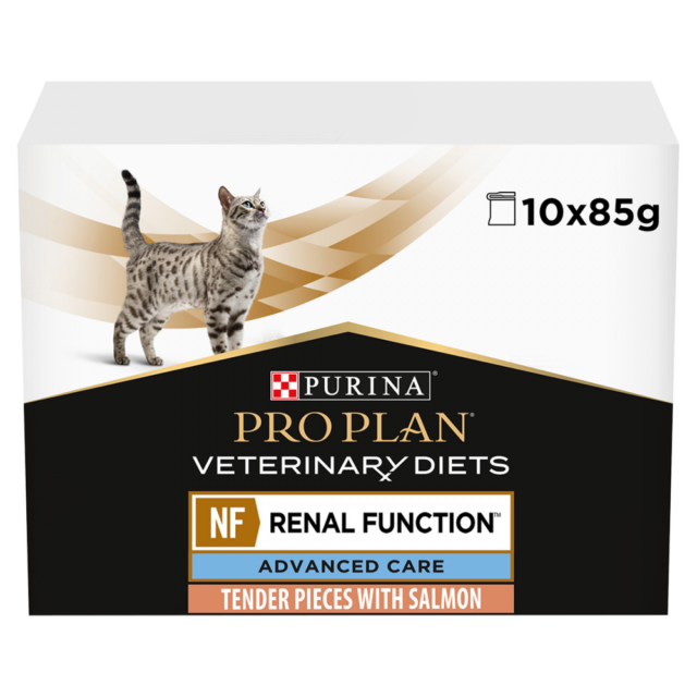 Purina Pro Plan Veterinary Diets Cat NF Renal Function Advanced Care Salmon is a complete wet food for adult cats with chronic kidney disease. Purina’s specialists have formulated this diet to support renal function in the advanced stages (IRIS 3 and 4) of feline chronic renal insufficiency (CRI).
