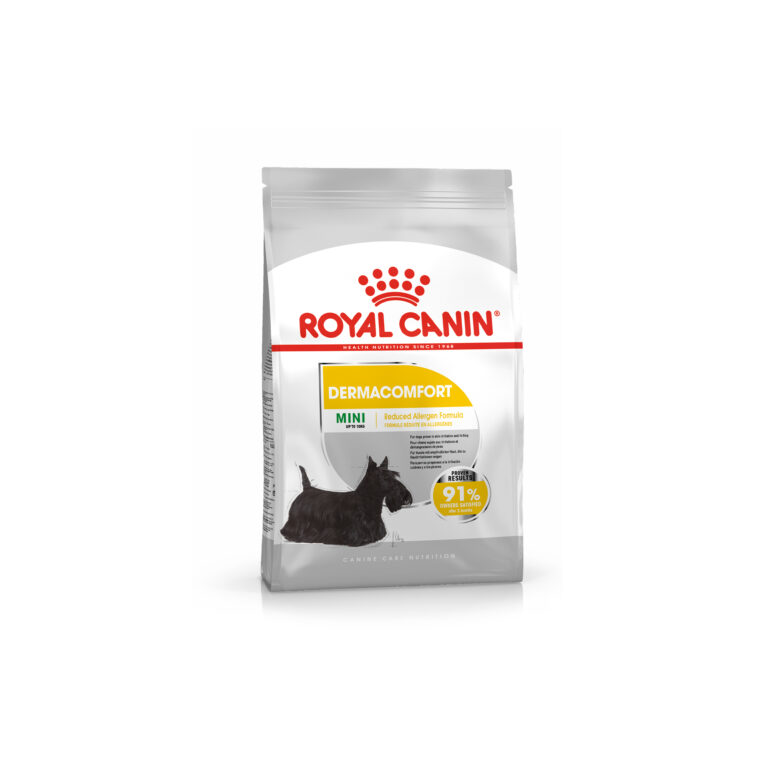 Royal Canin Mini Dermacomfort Dry Dog Food is tailored nutrition to support your adult mini dog?s sensitive skin and coat. Rich in omega-3 and -6 fatty acids, including EPA & DHA and GLA, this diet helps nourish dry skin and promotes a healthy coat. Also, remember to help protect your dog?s sensitive skin by keeping their bedding and favorite resting places clean.