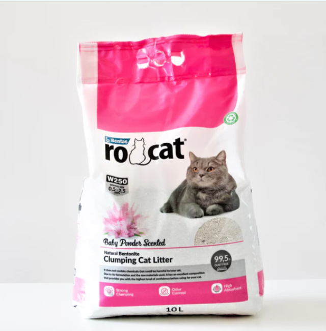 Produced from natural bentonite mineral with new generation technology, the Rocat cat litter has high odor absorption and ideal clumping rate. It is extremely hygienic as it is produced through heat treatment and is sifted twice to maximize dust removal. With a dusting level of 0.5%, it surpasses its competitors in the market.