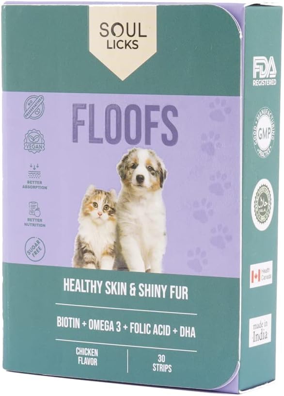 WHAT IS SOUL FLOOFS? > Soul Licks Floofs contains nutrients essential to keeping your pet?s fur & skin in top condition. We?ve packed all the most effective & safe ingredients in a tiny little strip, all for your little fur baby.